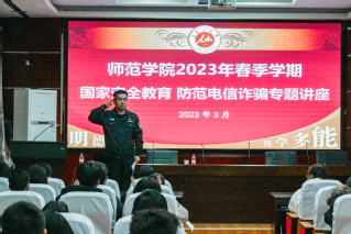 隨著科技的發(fā)展,新型電信詐騙的手段層出不窮,接踵而來,電信犯罪已成為當代最具迷惑性和危害性的一種犯罪,為提高我校大學生對于電信詐騙的防范意識,保護同學們的財產(chǎn)安全,提高同學們的警惕意識,師范學院邀請東明新村派出所杜建軍、馬霞玲警官于2023年3月9日晚到學院主樓103學術(shù)報告廳開展維護國家安全,防范電信詐騙專題講座。