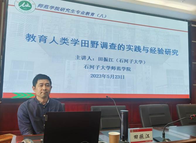 為提升研究生學(xué)術(shù)素養(yǎng),筑牢學(xué)術(shù)根基,搭建跨學(xué)科學(xué)術(shù)交流的平臺(tái),5月23日10:00,學(xué)院研究生專業(yè)教育講座在師范樓103學(xué)術(shù)報(bào)告廳舉行。本次講座有幸邀請(qǐng)南開(kāi)大學(xué)社會(huì)學(xué)博士,石河子大學(xué)法學(xué)院田振江副教授,講座主題為“教育人類學(xué)田野調(diào)查的實(shí)踐與經(jīng)驗(yàn)研究”。講座由師范學(xué)院郭學(xué)軍副教授主持,全院研究生積極參與。