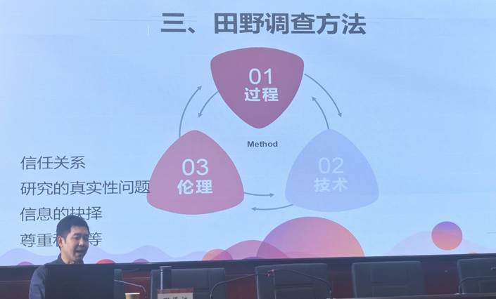 田振江副教授從自身田野調(diào)查經(jīng)驗(yàn)出發(fā),對(duì)田野調(diào)查的基本做法與成功關(guān)鍵進(jìn)行了總結(jié)。他談到,田野調(diào)查是高校人文社科領(lǐng)域重要的研究方法,也是高校研究取得創(chuàng)新的重要法寶。通過(guò)了解教育人類學(xué),研究生能更全面、深刻地認(rèn)識(shí)世界。