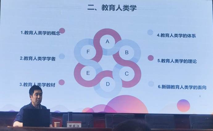 講座伊始,田振江副教授結(jié)合自身田野研究的經(jīng)歷介紹了自己的學(xué)術(shù)背景。他以學(xué)科概念、著名學(xué)者、專業(yè)教材、學(xué)科體系、系統(tǒng)理論和新疆教育人類學(xué)的面向六個(gè)維度構(gòu)建教育人類學(xué)體系。田振江副教授指出,田野調(diào)查的重點(diǎn)在于挖掘人物與村莊的故事,需要研究者具備全局觀,通過(guò)多點(diǎn)調(diào)查把握全局。研究者還須見(jiàn)微知著,把田野調(diào)查追溯到日常生活的恒常。