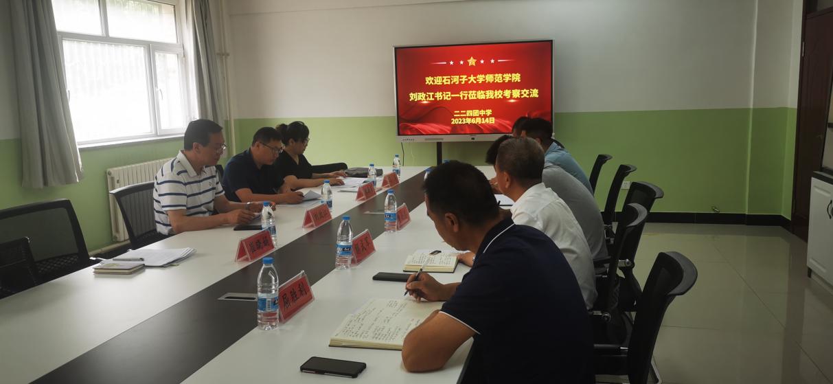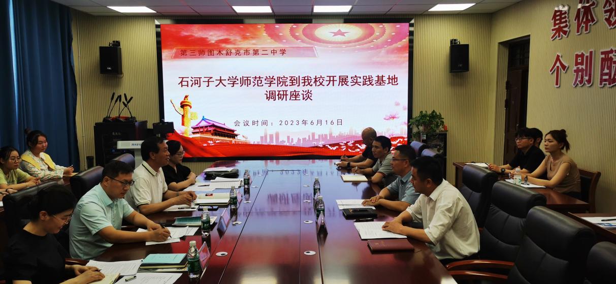 2023年6月11日至6月17日,師范學(xué)院黨委書記劉政江、副院長朱海東、教育碩士點負責(zé)人馬萍和教育系教師崔曉娟赴新疆生產(chǎn)建設(shè)兵團第二師華山中學(xué)、第十四師昆玉中學(xué)和皮山農(nóng)場中學(xué)、第三師圖木舒克第二中學(xué)調(diào)研座談。本次走訪調(diào)研,既是對實踐基地建立以來各基礎(chǔ)學(xué)校與石河子大學(xué)師范學(xué)院在人才培養(yǎng)、聯(lián)合科研互助等方面的工作總結(jié),也是師范學(xué)院研究生教育發(fā)展新階段開啟U-S深度合作的前瞻之旅。