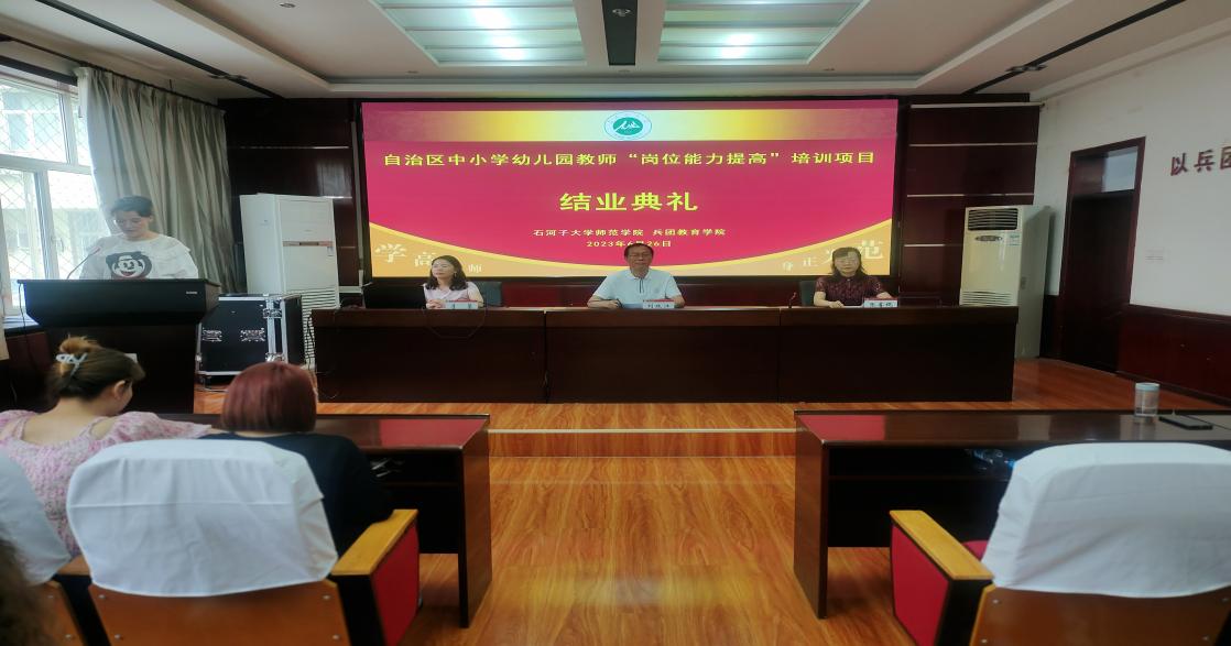 2023年6月26日上午,我院承辦的2022年度自治區(qū)幼兒園教師“崗位能力提高”培訓(xùn)項(xiàng)目結(jié)業(yè)典禮在師范學(xué)院103學(xué)術(shù)報(bào)告廳舉行。學(xué)院領(lǐng)導(dǎo)、項(xiàng)目執(zhí)行負(fù)責(zé)人、首席專家、班主任及100名參訓(xùn)教師參加結(jié)業(yè)典禮。