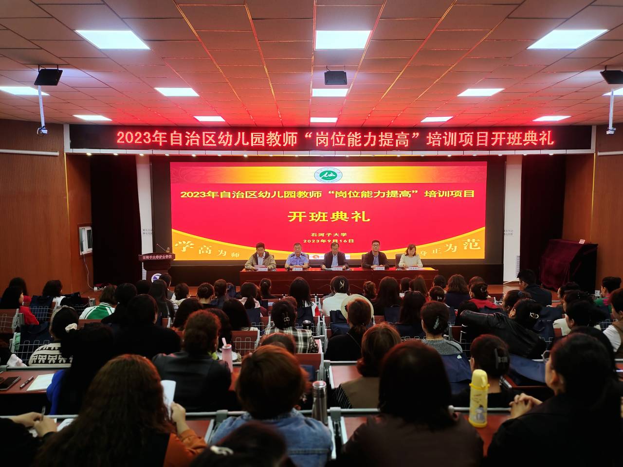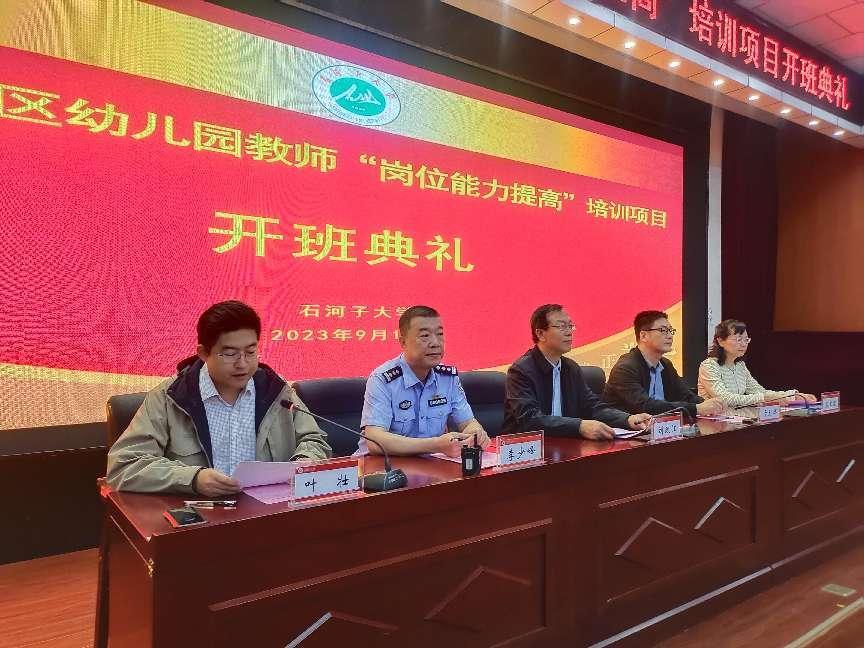 2023年9月16日上午,我院承辦的自治區(qū)幼兒園教師“崗位能力提高”培訓(xùn)項目開班。兵團教育學(xué)院院長、石河子大學(xué)師范學(xué)院黨委書記劉政江、石河子市公安局東明新村派出所所長李少峰、石河子大學(xué)護士學(xué)校領(lǐng)導(dǎo)、項目培訓(xùn)負(fù)責(zé)人、班主任及100名參訓(xùn)學(xué)員參加開班典禮。開班典禮由學(xué)院黨委副書記葉壯主持。