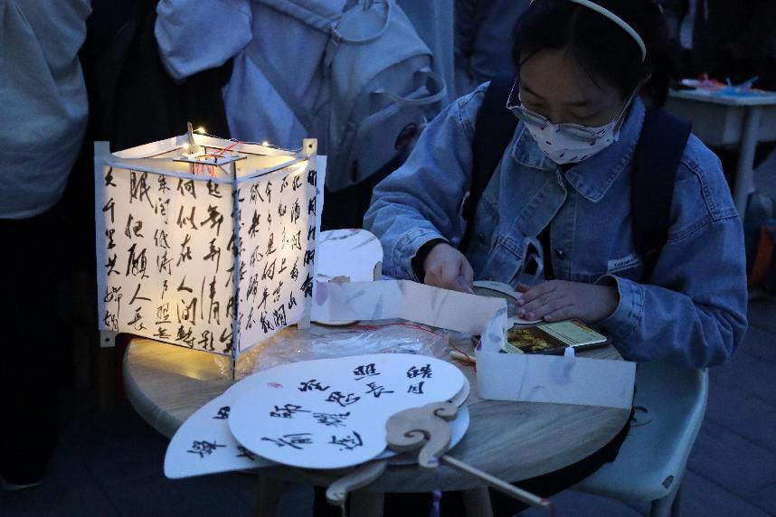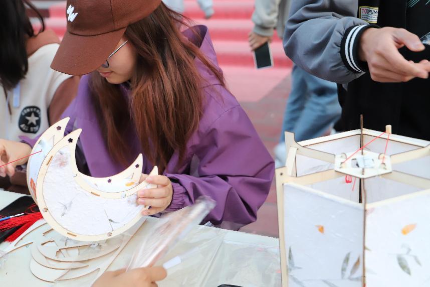 月下齊聚首,共賞月風華。活動現(xiàn)場,同學們踴躍參加種類多樣的活動,大顯身手。在宮燈制作區(qū),同學們相聚一起,制作獨屬于自己的燈籠,寄托心中的所愿。在投壺區(qū),同學們瞄準目標,蓄勢待發(fā),箭桿打擊進壺的清脆響聲和歡呼聲交織在一起,氣氛如火如荼,熱鬧非凡。在燈謎區(qū),同學們開動腦筋、凝神思考,時不時傳來的討論聲和解謎后的歡笑聲,烘托著濃濃的節(jié)日氛圍。在書法區(qū),同學們用心寫下的每一個方塊字,無一不展示著傳承中華文明,勇?lián)鷷r代重任的青年風姿。中華優(yōu)秀傳統(tǒng)文化的魅力在一個個活動中得到了淋漓盡致的體現(xiàn),同學們在歡樂的氛圍中共慶佳節(jié)。