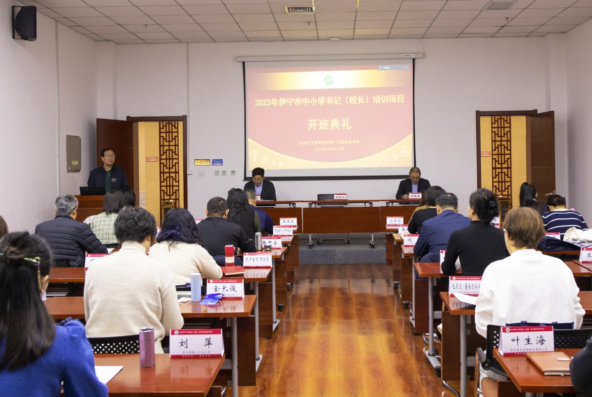 2023年12月11日上午,我院承辦的伊寧市中小學書記(校長)能力提升培訓項目開班。石河子大學師范學院黨委書記 兵團教育學院院長劉政江、班主任及參訓書記、校長參加開班。開班典禮由學院黨委副書記葉壯主持。