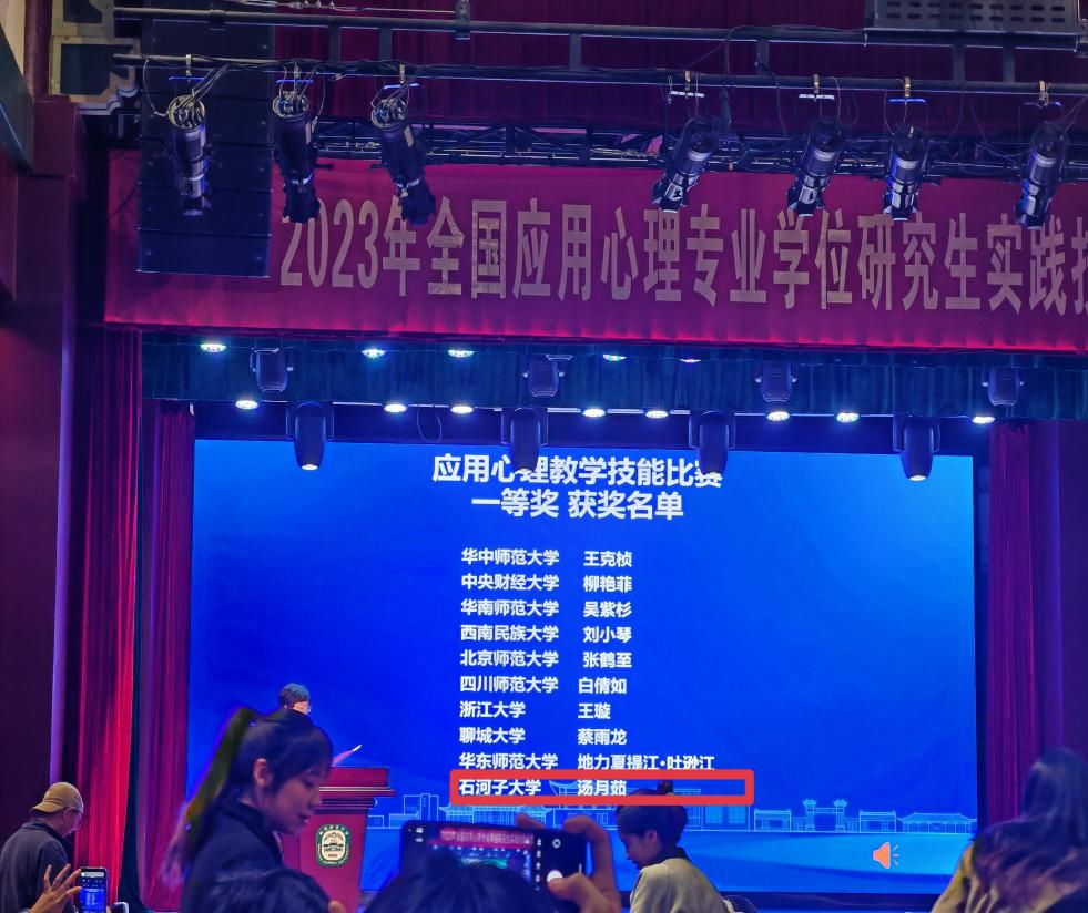 12月10日,由中國(guó)學(xué)位與研究生教育學(xué)會(huì)應(yīng)用心理專業(yè)學(xué)位工作委員會(huì)主辦,全國(guó)應(yīng)用心理專業(yè)學(xué)位研究生教育指導(dǎo)委員會(huì)指導(dǎo),南京師范大學(xué)心理學(xué)院承辦,江蘇省教育學(xué)類研究生教育指導(dǎo)委員會(huì)和上海市應(yīng)用心理專業(yè)學(xué)位研究生教育指導(dǎo)委員會(huì)協(xié)辦的2023年全國(guó)應(yīng)用心理專業(yè)學(xué)位研究生實(shí)踐技能大賽在南京師范大學(xué)隨園校區(qū)落下帷幕。該大賽是全國(guó)應(yīng)用心理專業(yè)學(xué)位研究生的最高級(jí)別賽事。
