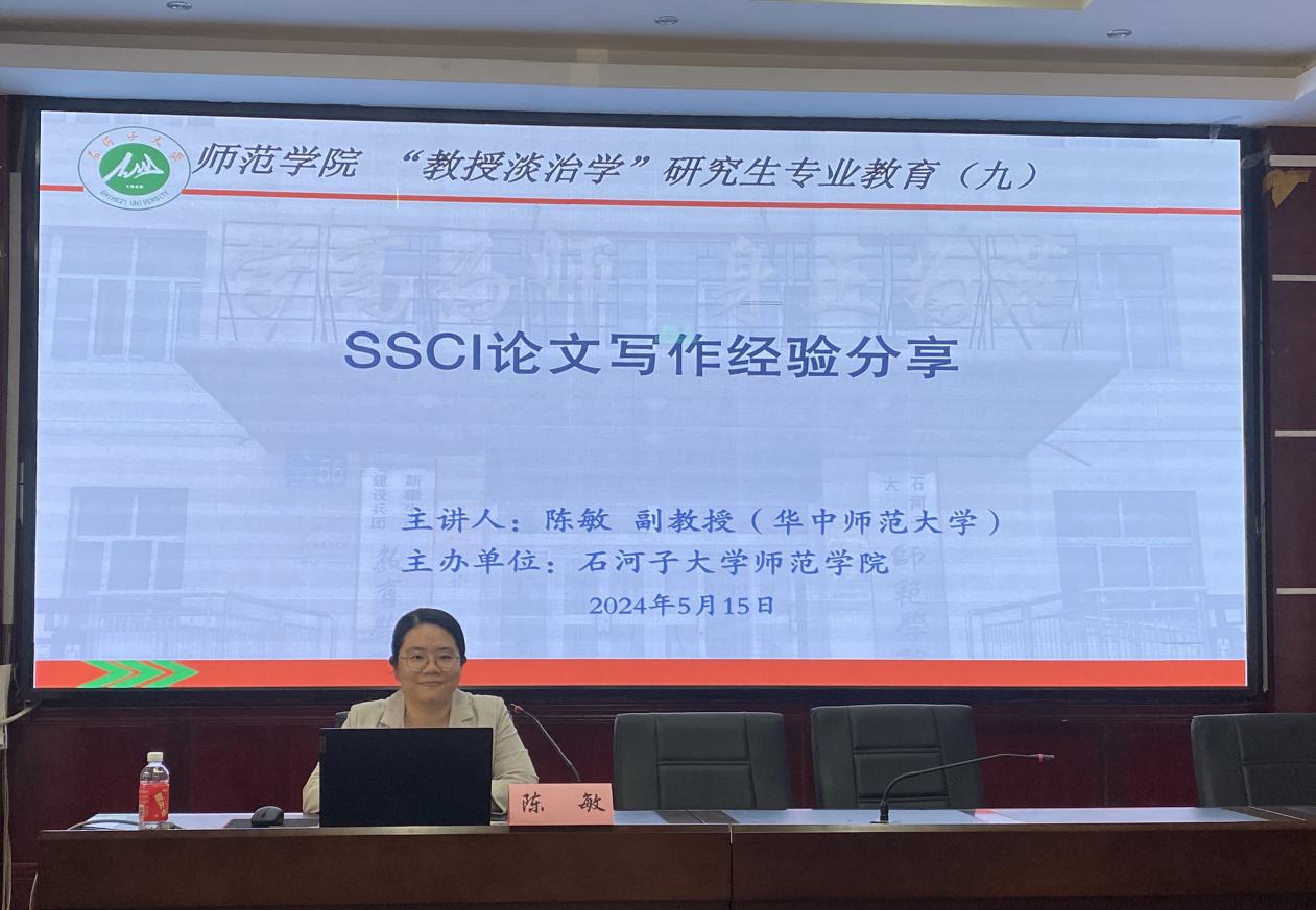 為加強(qiáng)學(xué)院研究生專業(yè)教育,提升學(xué)術(shù)論文撰寫與發(fā)表能力,5月15日師范學(xué)院迎來了一場特別的學(xué)術(shù)盛宴——第九次“教授談治學(xué)”研究生專業(yè)教育專題講座。本次講座有幸邀請到華中師范大學(xué)人工智能教育學(xué)部副教授、博士生導(dǎo)師陳敏老師,為大家?guī)砹酥黝}為“SSCI論文寫作經(jīng)驗(yàn)分享”的精彩講座。講座由教育技術(shù)系主任張紅艷教授主持,吸引了學(xué)院研究生及眾多感興趣的教師參加。
