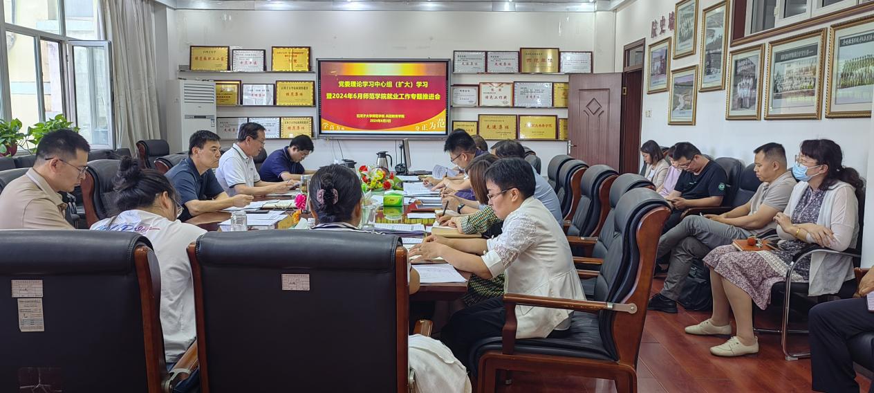 6月3日下午,師范學院 兵團教育學院在學院四樓會議室召開黨委理論學習中心組(擴大)學習暨2024年6月師范學院就業(yè)工作專題推進會,學校黨委宣傳部曹晶晶、左光、學院黨委中心組成員、中層干部參加了會議,學院黨委書記劉政江主持。