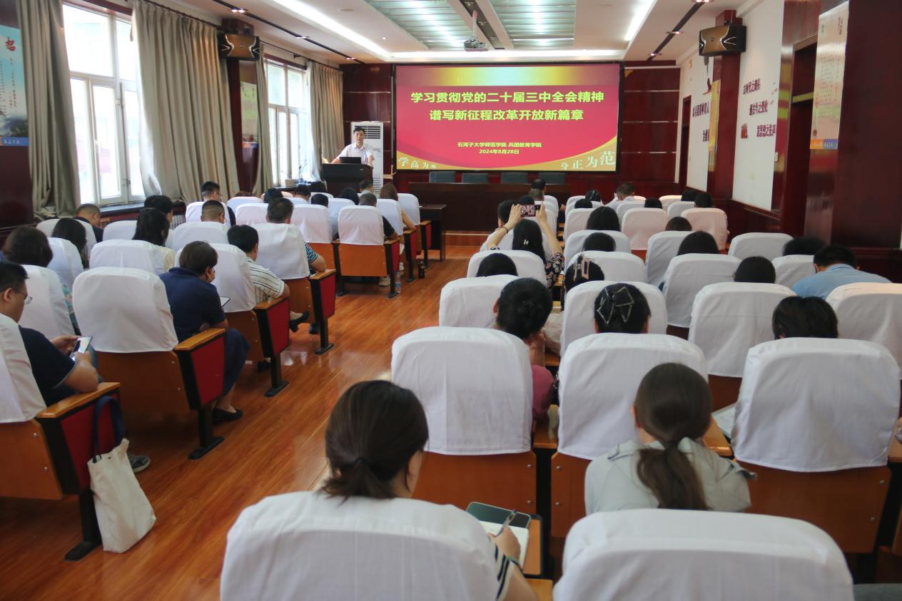 會(huì)上,郝朝暉書記以“深入學(xué)習(xí)貫徹黨的二十屆三中全會(huì)精神,譜寫新征程改革開放的新篇章”為題作了專題黨課講座。對(duì)黨的二十屆三中全會(huì)的主題、《中共中央關(guān)于進(jìn)一步全面深化改革、推進(jìn)中國(guó)式現(xiàn)代化的決定》的基本框架、進(jìn)一步全面深化改革的主題、總目標(biāo)、重大原則和黨的二十屆三中全會(huì)對(duì)進(jìn)一步全面深化改革做出的系統(tǒng)部署等方面做了全面解讀。特別是結(jié)合學(xué)院高質(zhì)量發(fā)展,就“構(gòu)建支持全面創(chuàng)新體制機(jī)制”,統(tǒng)籌推進(jìn)教育科技人才體制機(jī)制一體改革,深化教育綜合改革方面進(jìn)行了重點(diǎn)學(xué)習(xí)。對(duì)《中共中央國(guó)務(wù)院關(guān)于弘揚(yáng)教育家精神加強(qiáng)新時(shí)代高素質(zhì)專業(yè)化教師隊(duì)伍建設(shè)的意見》開展了學(xué)習(xí)。