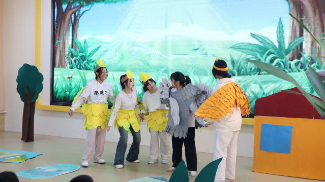 教育戲劇以其獨(dú)有的魅力,借生動故事與多元表演,點(diǎn)燃幼兒學(xué)習(xí)熱忱與探索激情,在語言表達(dá)、情感體悟、想象拓展及創(chuàng)造激發(fā)等維度,為幼兒成長傾灌豐沛的精神滋養(yǎng)。各參賽團(tuán)隊?wèi){深厚專業(yè)積淀與熾熱情懷,為觀眾呈獻(xiàn)一幕幕動人心弦的精彩篇章。如皮影小劇場巧引《九色鹿的誓言》,表演者以卓絕技藝,鮮活勾勒出九色鹿的至善至美與慧心巧思,令臺下幼兒仿若穿越時空,深陷古老神話奇境;《萬獸之王》表演創(chuàng)意奔涌、活力四溢,借靈動肢體與傳情表意,雕琢性格分明的動物群像,使幼兒于歡歌笑語間領(lǐng)略動物王國的妙趣祥和;《丑小鴨新編》新穎吸人,勇敢自信、堅持自我的丑小鴨讓幼兒學(xué)會勇敢做自己,不懼失敗,找到自己的價值所在;《犟龜》演出直擊人心,大學(xué)生們以細(xì)膩情思演繹小烏龜?shù)膱砸銏?zhí)著,為幼兒開啟一堂深具啟迪的勵志之課。教育戲劇以藝術(shù)化的呈現(xiàn),為幼兒成長之路鋪就絢爛底色,彰顯其在學(xué)前教育領(lǐng)域的獨(dú)特價值與深遠(yuǎn)意義。
