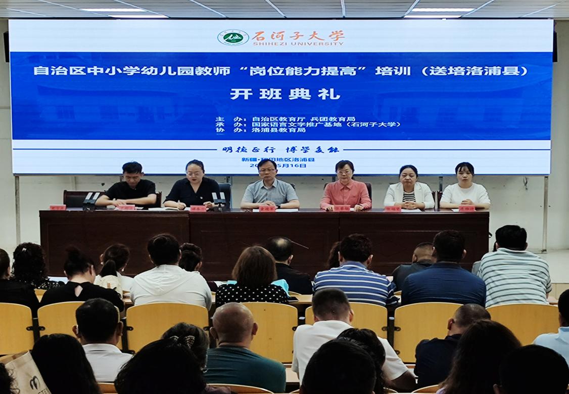 兵團教育學(xué)院、師范學(xué)院貫徹落實學(xué)校黨委“鑄牢中華民族共同體意識,服務(wù)南疆高質(zhì)量發(fā)展”戰(zhàn)略部署和年度“落實服務(wù)南疆高質(zhì)量發(fā)展十大行動”重點任務(wù),組織以國家級普通話水平測試員為主體的專家團隊赴和田地區(qū)洛浦縣送培,開展自治區(qū)中小學(xué)幼兒園教師“崗位能力提高”培訓(xùn)。5月16日,本次培訓(xùn)開班典禮在洛浦縣第二中學(xué)舉行,兵團教育學(xué)院院長童德軍,洛浦縣教育局譚春蘭及專家團隊、130名參訓(xùn)教師參加了典禮。