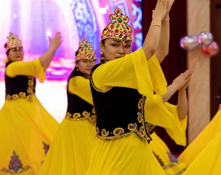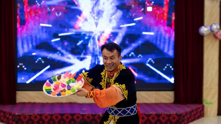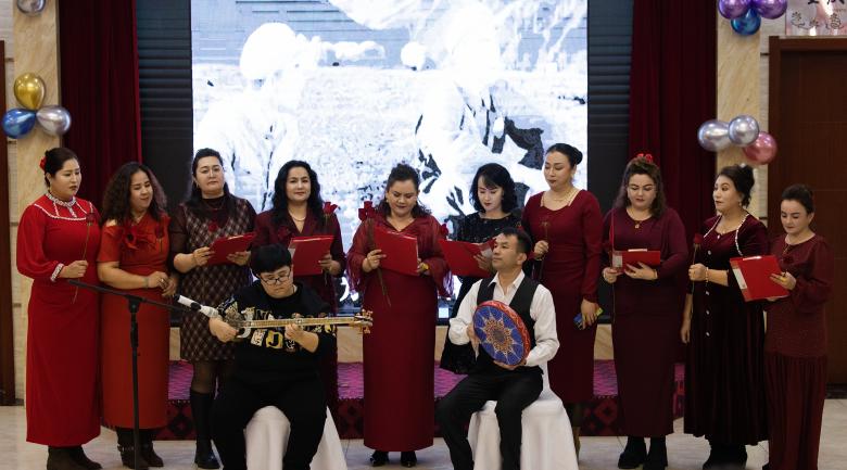 來(lái)自巴楚縣的參訓(xùn)教師迪力夏提帶來(lái)的舞蹈《亞克西》,舞步矯健靈動(dòng),將冬至的喜悅與民族風(fēng)情展現(xiàn)得淋漓盡致;《花兒為什么這樣紅》在熱瓦普與手鼓的伴奏下經(jīng)典旋律婉轉(zhuǎn)悠揚(yáng);詩(shī)朗誦《教育綻放幸福》《我驕傲,我是一名老師》聲情并茂,重溫了教育工作者“躬耕教壇、強(qiáng)國(guó)有我”的初心使命,彰顯了參訓(xùn)教師積極向上的奮斗姿態(tài);扎依旦老師的朗誦《冬暖石大 恩潤(rùn)心田》,以真摯情感為活動(dòng)畫(huà)上溫暖感恩的句點(diǎn)。整場(chǎng)演出精彩紛呈、高潮迭起,充分展現(xiàn)了各族教師團(tuán)結(jié)奮進(jìn)、同心筑夢(mèng)的團(tuán)隊(duì)精神。